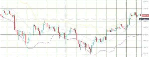 日線圖上看,昨日價格是一個陽線結尾,行情上行突破五日攻擊線壓制,目前日內走勢延續昨日漲幅,價格已經突破五日、十日均線壓制,打破18500-18800阻力位置,日內若是能進一步上行突破19000一線,預計上行走勢還將進一步延續,整體多頭開始占優,日內操作順趨勢即可。