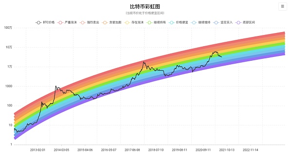 比特幣彩虹圖曾在價格高點提示「存在泡沫」