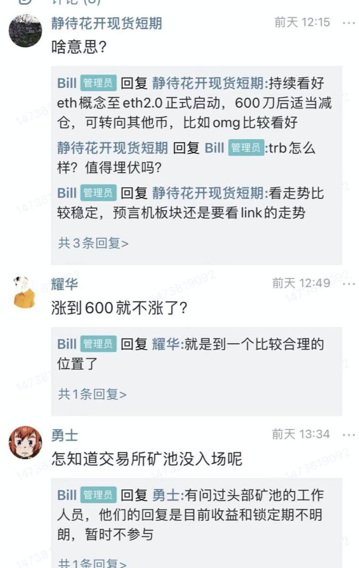 ?????Bill更是指出ETH2.0的鎖倉機制只進不出,是利好ETH價格的最主要因素,而在ETH到達600刀時可轉向OMG等其他幣,此時OMG在4刀附近,當前價格4.8刀左右,漲幅超過20%,完美銜接。????