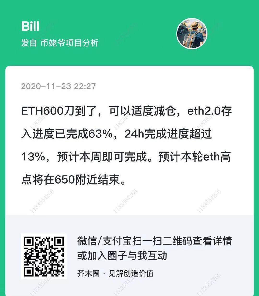 ????11月22日0點15分Bill預測本輪ETH高點為600刀附近,并圈內通知可適當減倉,此時ETH535刀附近。????