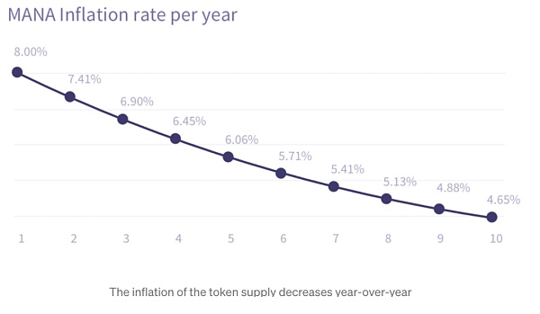 以下是根據基金會資金排放給創造者以促進增長而估計的年度通貨膨脹(在MANA公開銷售時),所有這些都會根據DAO的建議和修正而改變。