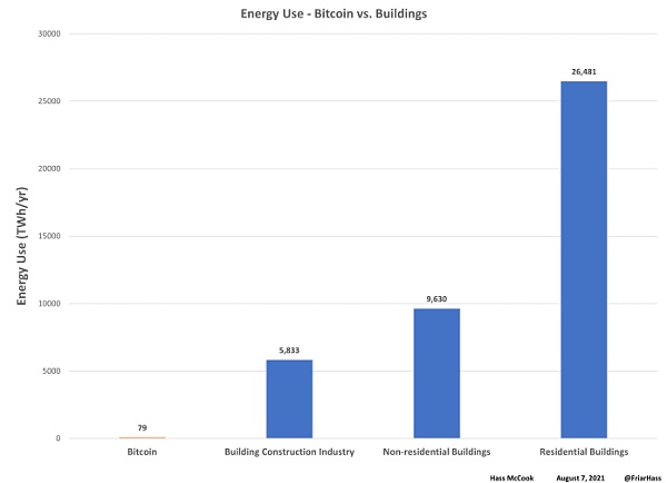 圖片:比特幣與建筑行業——每年的能源使用量,單位為 TWh