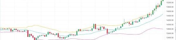比特幣昨日整體價格再次升高,高點破位15000位置后,直線拉升至15300,目前保持15100上方一線,價格暫時受上方壓力,得到一定的回調,當前幣價位于在15150附近運行。從日線圖中可以看出,目前比特幣已經走出3連陽線,并且今日創下了兩年內的新高。昨日比特幣從晚間22點開始從14777位置直線上升至凌晨0點到達年度最新高點15300位置,并且在14200位置得到盤整,整體來看行情已經走出正常范圍,目前多頭趨勢強烈,行情自沖高之后,處于回調階段!