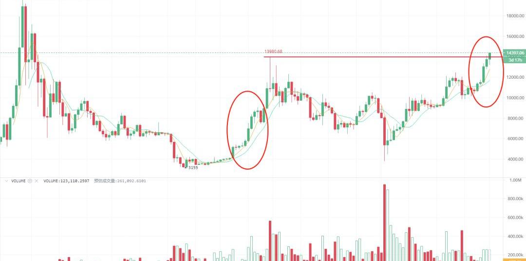 灰度BTC信托又增持了825BTC,連續15個工作日增持。到2020年底,Grayscale預計將持有500,000BTC,占流通總量的3%。受到機構需求端的影響,比特幣繼續突突突刷新新高。周線圖走得異常強勢,但是已開始偏離MA5,繼續加速拉升容易導致短線獲利盤止盈,造成價格回落。