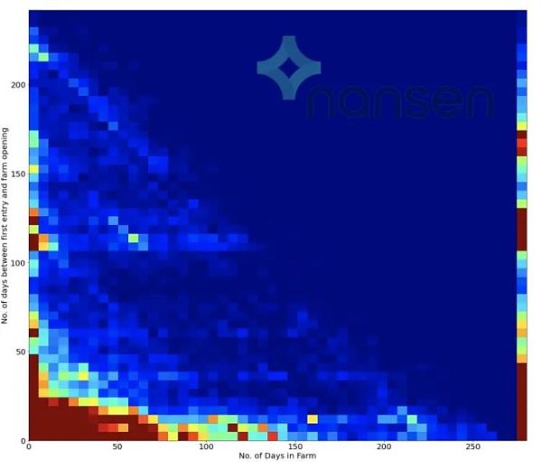 Nansen 的研究分析了 400 個流動性農場的所有代幣轉移,結果發現很大比例的收益農民(36.4%)在進入池子的前 5 天內會退出池子,而今天只有13%的地址在繼續當LP。