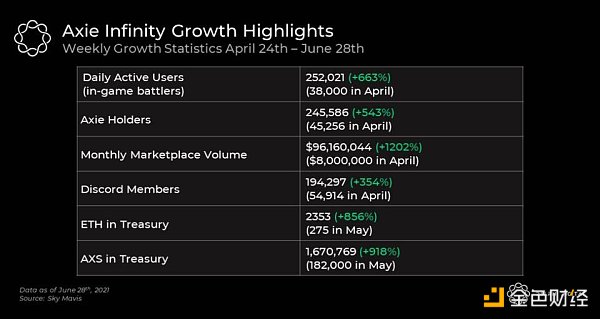 與傳統模式不同的是,在 Axie Infinity 的「Play-to-Earn」(邊玩邊賺)模式中,95% 的交易收益都歸玩家所有。Axie Infinity 協議獲取的大約 5% 的收益將流入其「Community Treasury」(社區金庫)。與此同時,隨著 Ronin 推出,通過支付 2 AXS 來代替 ETH 的 Gas 成本,金庫現在有了新的收入來源,改善了游戲的收入結構。在 Staking 部分上線后,該金庫將分配給代幣持有者。這些是最真實形態的留存收益。