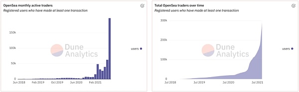 對于NFT來說,這仍然是令人難以置信的早期。如果目標市場最終是 "任何在網上買東西的人"(應該是這樣),并且有超過20億人進行了網上購物,那么只有0.01%的目標市場購買了NFT,用OpenSea的29.2萬名歷史交易者作為代表。