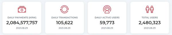 而它的主要結算單位也是基于 Terra 的韓元穩定幣 KRW。根據 Chaiscan 數據,截至 8 月 28 日,Chai 的近期的日活躍用戶數約為 5.9 萬,日均交易逾 10 萬筆,日消費金額 20.84 億 KRW(180 萬美元)。