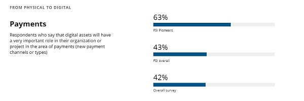 調查結果顯示,使用加密貨幣/數字資產付款的行業先驅者為 63 %,普通民眾為 42 %,總體結果為 43 %。
