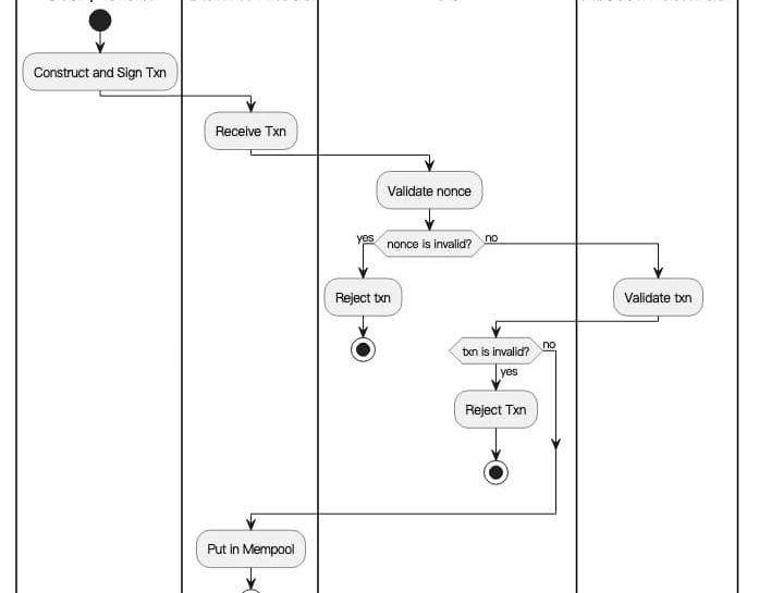 用戶被期望發送稱為用戶操作的鏈外信息,這些操作被區塊構建者收集并批量打包成一個批交易。構建者負責過濾這些操作,以確保他們只接受支付費用的操作。并有一個單獨的Mempool用于用戶操作,連接到這個Mempool的節點進行ERC-4337特定的驗證,以確保用戶操作在轉發之前保證支付費用。