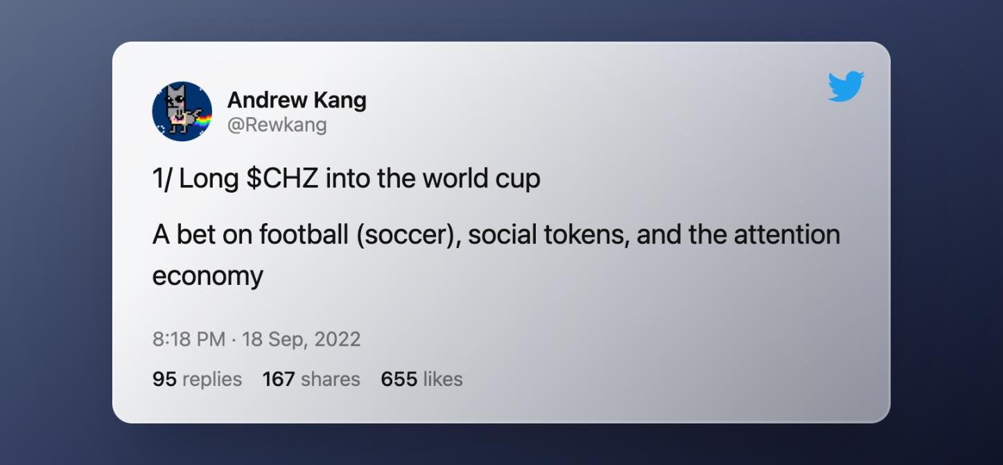 進入2022世界杯年,Socios已經與阿根廷和葡萄牙等球隊建立了合作伙伴關系,這兩個球隊分別是梅西和C羅所在的球隊。這些球員處在世界上最知名的運動員之列,有數十億人觀看他們的比賽。換句話說,世界杯對于Socios、Chiliz區塊鏈和整個粉絲社交代幣來說將是一個巨大的營銷機會。
