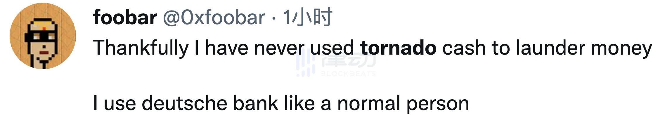 在監管消息傳出后不久,名為@Depression2019的用戶就在Twitter上發文,表示自己積累了大量名人以及KOL的錢包地址,并會通過TornadoCash向這些發送0.1ETH。不少用戶紛紛在下方互動,以為這種公開反抗監管的行為只是說笑。