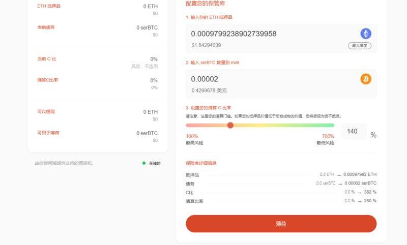 選擇?ETH??的抵押數量,輸入合適的清算比例,然后合成資產。