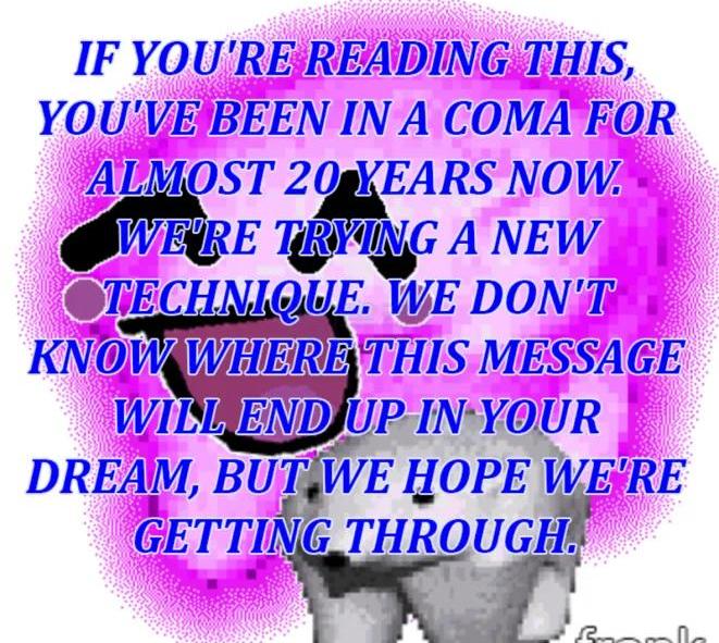 FrankFrankNFT的官方推特說,「如果你正在看這個圖片的文字,那么證明你基本上已經昏迷了20年了,我們正在嘗試一種新的技術,我們不知道這條消息最終會你夢中的什么地方出現,但是我們希望可以一起與你度過難關」。