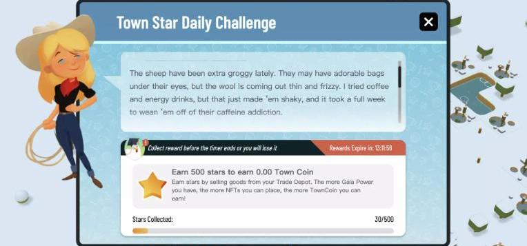 如今GalaGames唯一上線的游戲便是TownStar。TownStar是一款搭建在網頁端的Play2Earn區塊鏈游戲。