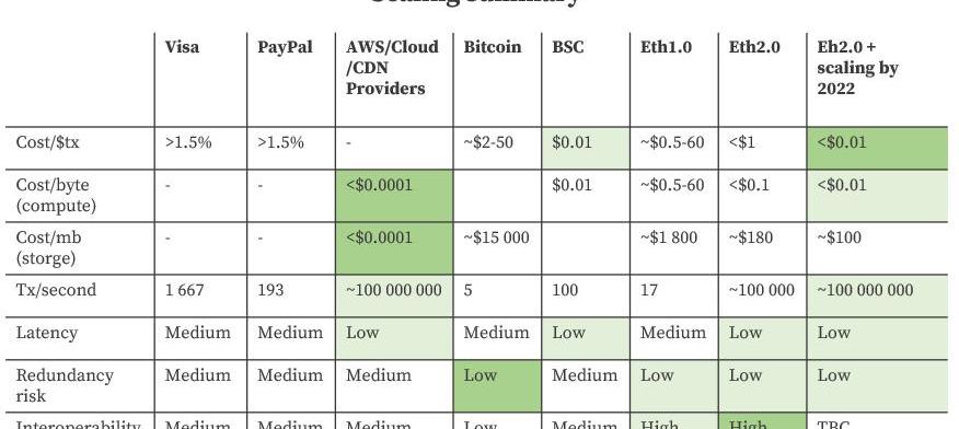 長話短說:以太坊2.0的推出和正在開發的擴展解決方案可讓以太坊在未來12-18個月內達到具有競爭力的水平。在互操作性上,以及當交易需要絕對的有效性時的每筆交易成本方面,以太坊目前勝過所有的替代方案。