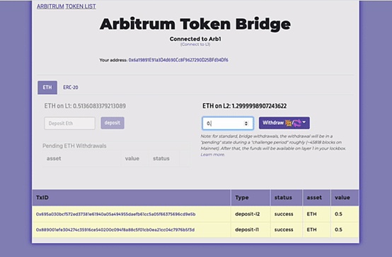 目前,Aribitrum Bridge支持ETH和ERC-20資產在Layer1和Layer2之間的轉移,手續費以ETH結算。
