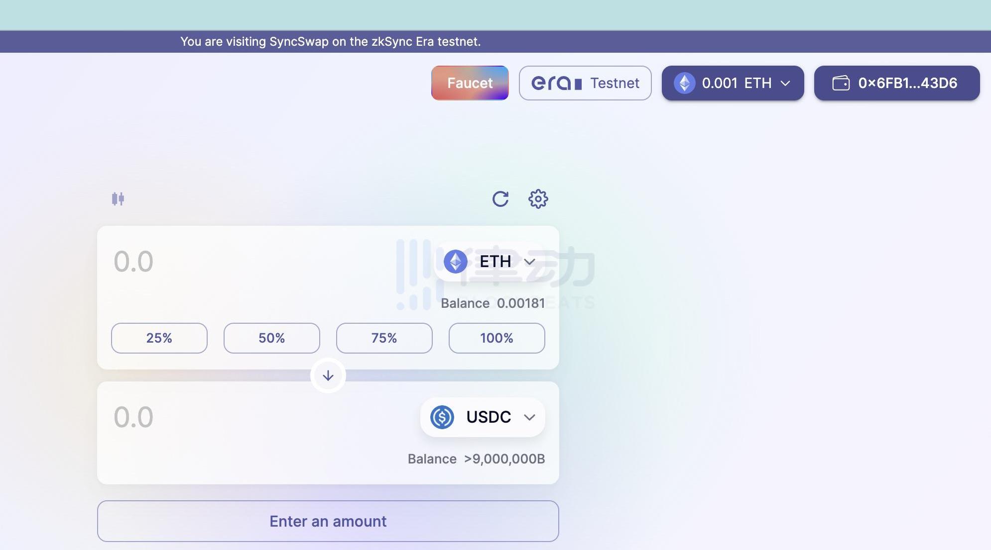 進去SyncSwap官網,解鎖錢包。SwitchtozkSyncEratestnet。