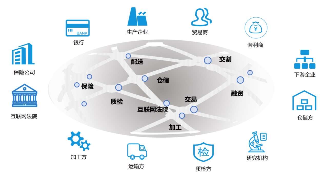 由于實現了數據的標準化,不同參與主體可以充分發揮其優勢和能力,比如倉儲方可以簽發現貨倉單,但缺乏交易流動性,通過平臺可以推到具有流動性和處置能力的現貨貿易平臺或交易所。