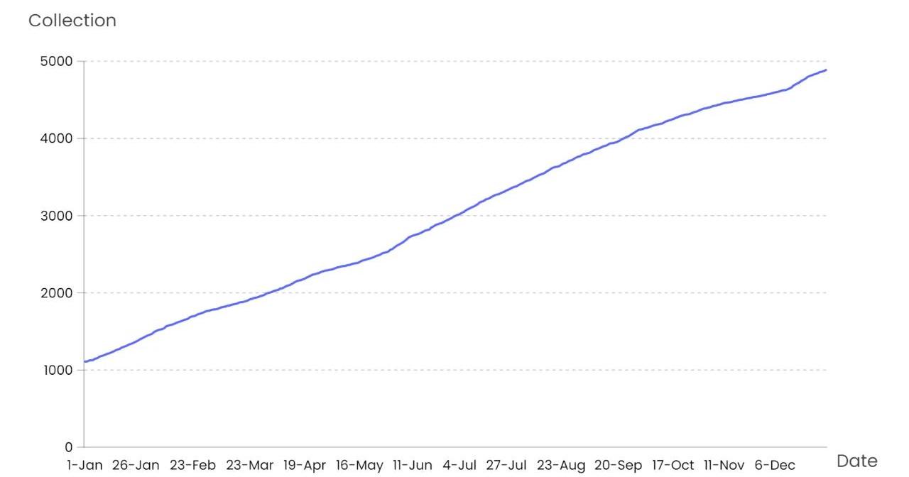 不同類別市值比較,數據來源:NFTGo.io6.NFT發行數量正在平穩增長,目前已經達到4,888個藏品和39,669,418個NFTs,即便在市場行情整體下行的背景下,NFT項目的發行仍平均分布在各個月份,發行數量平均每月增速依舊維持在11.86%。