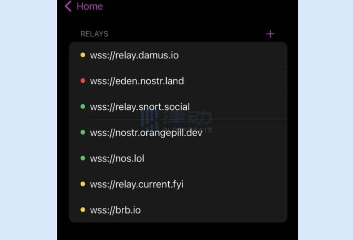Nostr是一個「極簡」的社交協議,旨在「一勞永逸」地創建一個抗審查的全球社交網絡:不依賴于任何受信中央服務器、不依賴于P2P技術,不會發行Token。Nostr的技術架構十分簡單:用戶運行一個本地客戶端,比如damus。當需要發布某些內容時,用密鑰對其簽名,并將其發送到多個中繼器。當需要查看某些內容時,你可以詢問周圍的中繼器以獲得信息。任何人都可以運行中繼器,中繼器只存儲與轉發內容。用戶無需信任中繼器,簽名只在客戶端進行驗證。中繼器不與另一個中繼器通信,僅直接與用戶通信。當想要「關注」某人時,用戶只需指示他們的客戶端查詢它知道的中繼器,以獲取來自該公鑰的帖子。中繼器可以阻止用戶在它那里發布任何內容,但這對用戶來說沒有影響,因為他們可以將內容發布到其他中繼器。任何人也都可以自己搭一個中繼器,并不復雜,如果找不到其他中繼器發布內容,自己的中繼器依然可以發布。