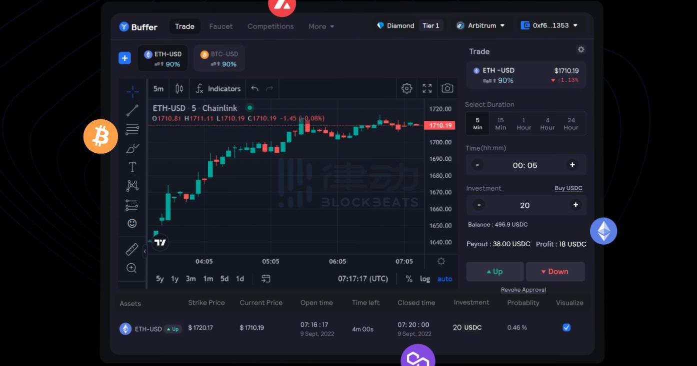 Buffer的LP為特定Token的流動性池提供流動性,并獲得rBTToken。提供的流動性用于承銷看漲和看跌期權,期權買方支付的權利金將作為收益分配給rBT持有者。期權買在支付期權費用后可以設定行權價以買入看跌或看漲期權,購買的期權可以在到期日之前的任何時間點直接在流動性池交易。