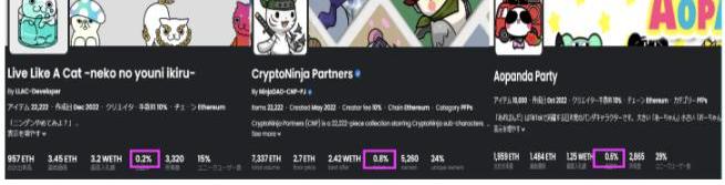 ikehaya提到以下四點是廉價MINT的優點由于沒有最初的“收回基本資金”的銷售,所以更容易降低列表率風險低,所以更容易吸引投資者更容易建立社區動力和增加市場資本化,因為能夠采取更多的發行數量可以吸引“朋友”而不是“客戶”。我們先來看看ikehaya參與的三個有代表性的廉價MINT項目的上市率。這些都是日本NFT收藏的代表。