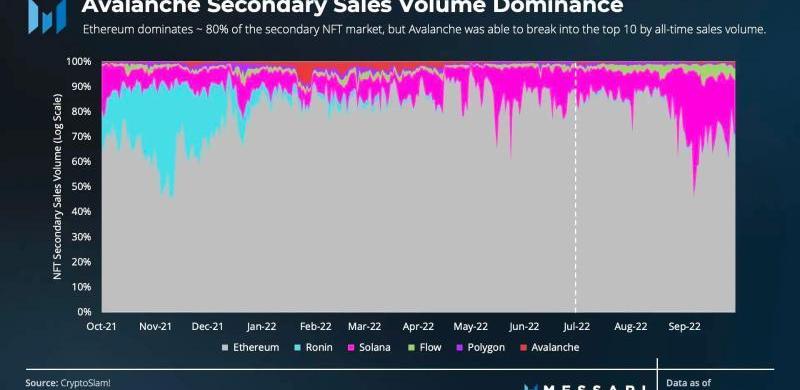 盡管以太坊仍然主導著大約80%的二級NFT市場,但在2022年初,Avalanche成功地按歷史銷售量闖入前10名。定性分析