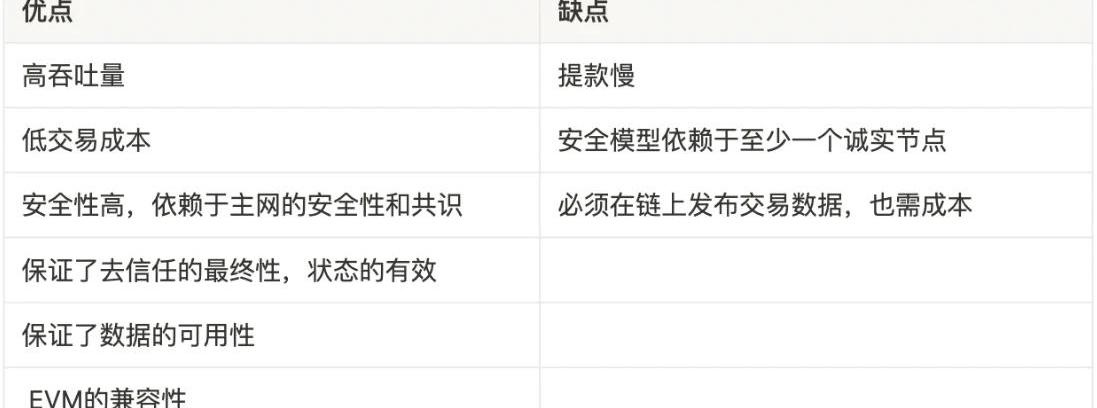 +ve:1)提供高吞吐量2)和低交易成本3)roll-up交易數據存儲在第1層鏈上,提高了透明度、安全性、抗審查性和去中心化性。在不犧牲安全性或不信任的情況下提供可擴展性的巨大改進。4)optimisticrollup的欺詐證明保證了去信任的最終性,狀態的有效性,而且并允許誠實的少數人保護鏈5)optimisticrollup也通過將交易數據上主網保證了數據的可用性。6)與EVM和Solidity的兼容性允許開發人員將以太坊原生智能合約移植到匯總或使用現有工具來創建新的dapp。-ve:1)提款慢,通常需要等7天,以允許提交質疑和欺詐證明2)安全模型依賴于至少一個誠實節點執行匯總交易并提交欺詐證明來挑戰無效狀態轉換。3)Optimisticroll-up必須在鏈上發布所有交易數據,也需一定的成本。OptimisticRollup項目: