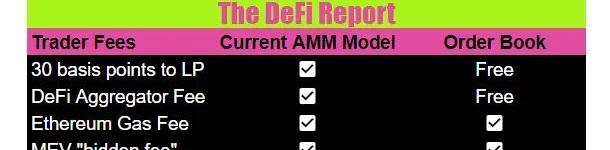 據說,大型傳統金融參與者已經在構建解決方案,以在新的交易模型中將PFOF引入DeFi。在本節中,我們將介紹它可能是什么形式,以及它對Uniswap等AMM的影響。特別是,PFOF是否破壞目前的分布式流動性提供商模式?正如我們上面提到的,MEV本質上是交易者今天由于草率的交易執行和在技術堆棧的區塊構建層中行賄而產生的一種成本。交易員們正在為此付出代價,并向Uniswap的“LPs”支付費用。如果訂單流支付模型加入競爭,MEV會發生什么?使用訂單流支付,你可能會在收到交易之前進行競價拍賣,以填補交易。該交易所將出售訂單流——類似于Robinhood和其他經紀商目前向大型做市商出售其訂單流的方式。這意味著交易員將通過DeFi協議出售訂單流而無需支付任何費用。這種模式將回歸到我們在傳統金融中看到的模式。為訂單流支付的公司將訂購對他們有利的交易,并直接向聚合器或訂單簿協議支付小額費用,以提供流量。以下是收費結構的變化: