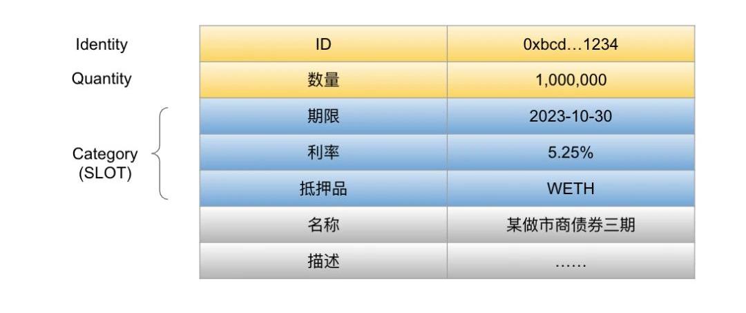 表1:各類ERC協議在特性、場景和支持資產類型上的對比可以看到,ERC-3525更進一步地支持了半同質化通證(SFT),更加貼合金融NFT的使用場景。但如果需要更深入了解3525是如何實現上述功能的,勢必需要引入一些技術語言。在此我們盡量以更加通俗的舉例,幫助大家快速理解ERC-3525的核心設計,以及它是如何支持SFT的。ERC-3525的設計理念與應用