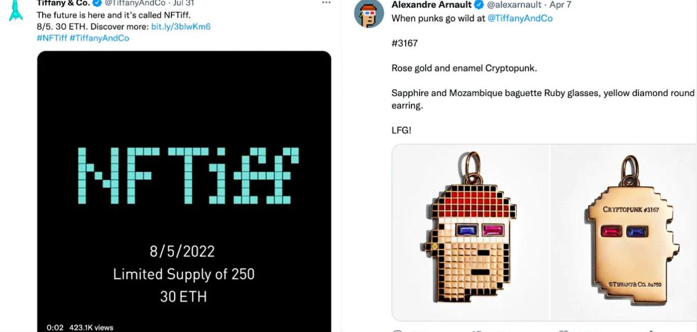 7月31日,Tiffany&Co.官方Twitter發布消息,決定將于8月5日在其NFT官網以30ETH的價格發售250個限量NFT——“NFTiff”。持有CryptoPunks的用戶可以通過同時持有該NFT兌換一條由貴金屬和寶石打造的實物朋克項鏈,且該項鏈將與用戶所持有的CryptoPunks一模一樣。該消息一經發布,CryptoPunks的地板價應聲上漲10%,并于8月3日最高漲到77.55ETH。發售當天,NFTiff僅在20分左右就被搶購一空,并且其在Opensea的最高成交價達到了55個ETH。
