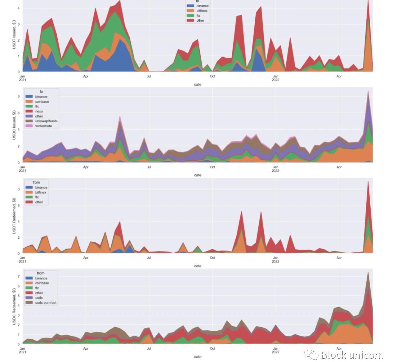 請注意,在2022年5月,在LUNA穩定幣崩盤時,大約10B美元的USDT被贖回。其中,大約5B美元是“USDT去風險”,做市商將USDT換成USDC。USDC很有錢