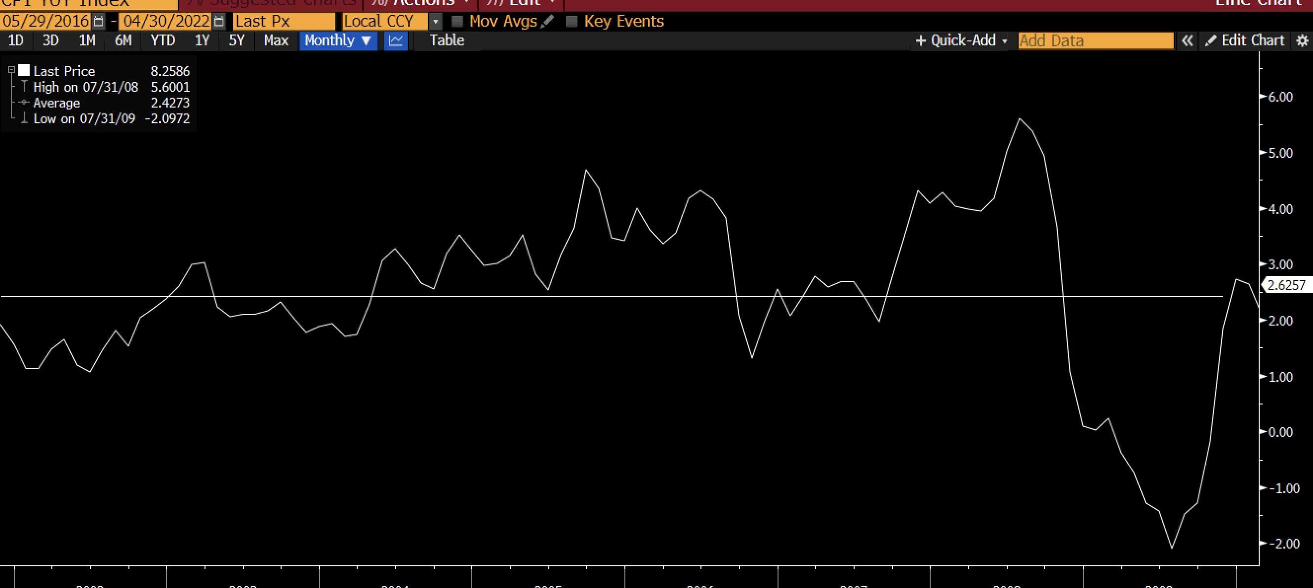 我們的經濟面臨急劇衰退的高風險,但這種衰退很快就會結束。當然,這不是確定的,只是說持久的經濟衰退可能性較低。但無論如何,通脹已經是過去式了。但是,如果股市沒有出現進一步下跌(很有可能),我們就不得不實時評估框架,因為屆時可能會出現虛假反彈和更強硬的美聯儲。盡管一切都還不太好說,但我認為股市已經接近低點(現在或未來幾周)。而即使大宗商品價格上漲,與去年同期相比也幾乎不可能實現增長,我認為它們還會繼續下跌一段時間,就像2001年那樣。