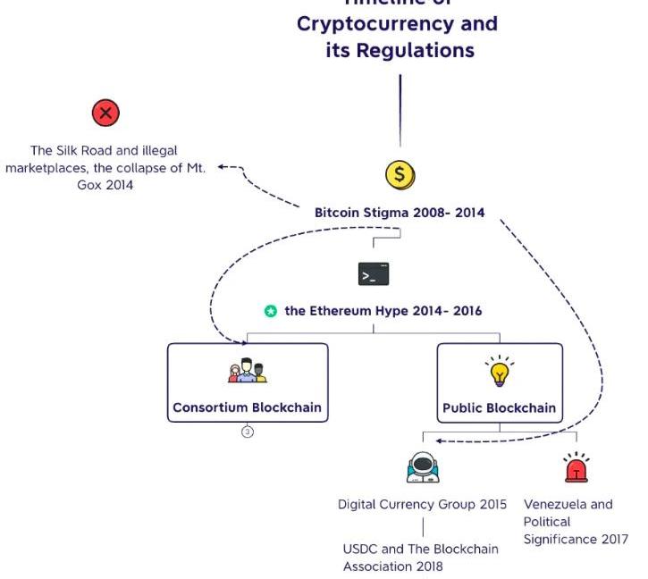 前言隨著比特幣價格跌破30000美元,僅剩去年11月最高價格的一半,又一輪加密貨幣牛市結束了。俗話說:幣圈一天,人間一年。如今市值超過1萬億的加密產業其實只有不到15年的歷史,而每輪周期都是一次新技術與新敘事的結合,吸引著新鮮血液的加入。這一輪牛市則是在web3的敘事中落下帷幕的。所謂web3,就是指下一代的互聯網,它的內容不僅可讀可寫,還可以由用戶所擁有。就在市場崩盤的幾周前,媒體上的互聯網員工還在熱烈討論著是不是應該辭職投入web3,大學生則在聊著是不是應該退學,allincrypto——如此種種,聽起來都像是派對結束前最后的狂歡。實際上,區塊鏈和加密貨幣經歷了漫長而艱難的歷程,才從最開始的臭名昭著,成為現在所謂的互聯網的未來。回看歷史,從比特幣誕生至今,區塊鏈曾經走過三個歷史的岔路口:第一個是選擇比特幣還是以太坊;第二個是選擇聯盟鏈還是公有鏈;第三個是不同國家監管機構的抉擇:禁止加密貨幣,還是支持并將其視為潛在的增長來源。為什么是以太坊讓加密世界迎來曙光?為什么市場最終選擇了公有鏈而不是聯盟鏈?區塊鏈或者Crypto最大的價值到底是什么?加密貨幣是如何從地下走上臺面,最終成為國家發展戰略的?為了解答這些問題,讓我們一起回顧區塊鏈的發展歷史,以及相伴隨的美國監管政策的巨大轉變。這不僅有關新技術和它的應用,更是監管者和創新者之間的一場博弈。"創世區塊":比特幣和以太坊的創建和早期歷史