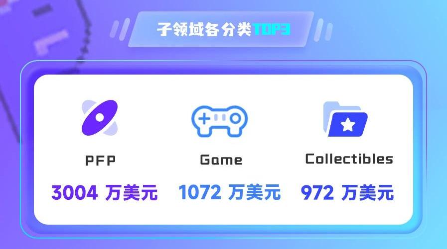 按過去24小時成交量,排前三的子領域分別為PFP、Game和Collectibles。
