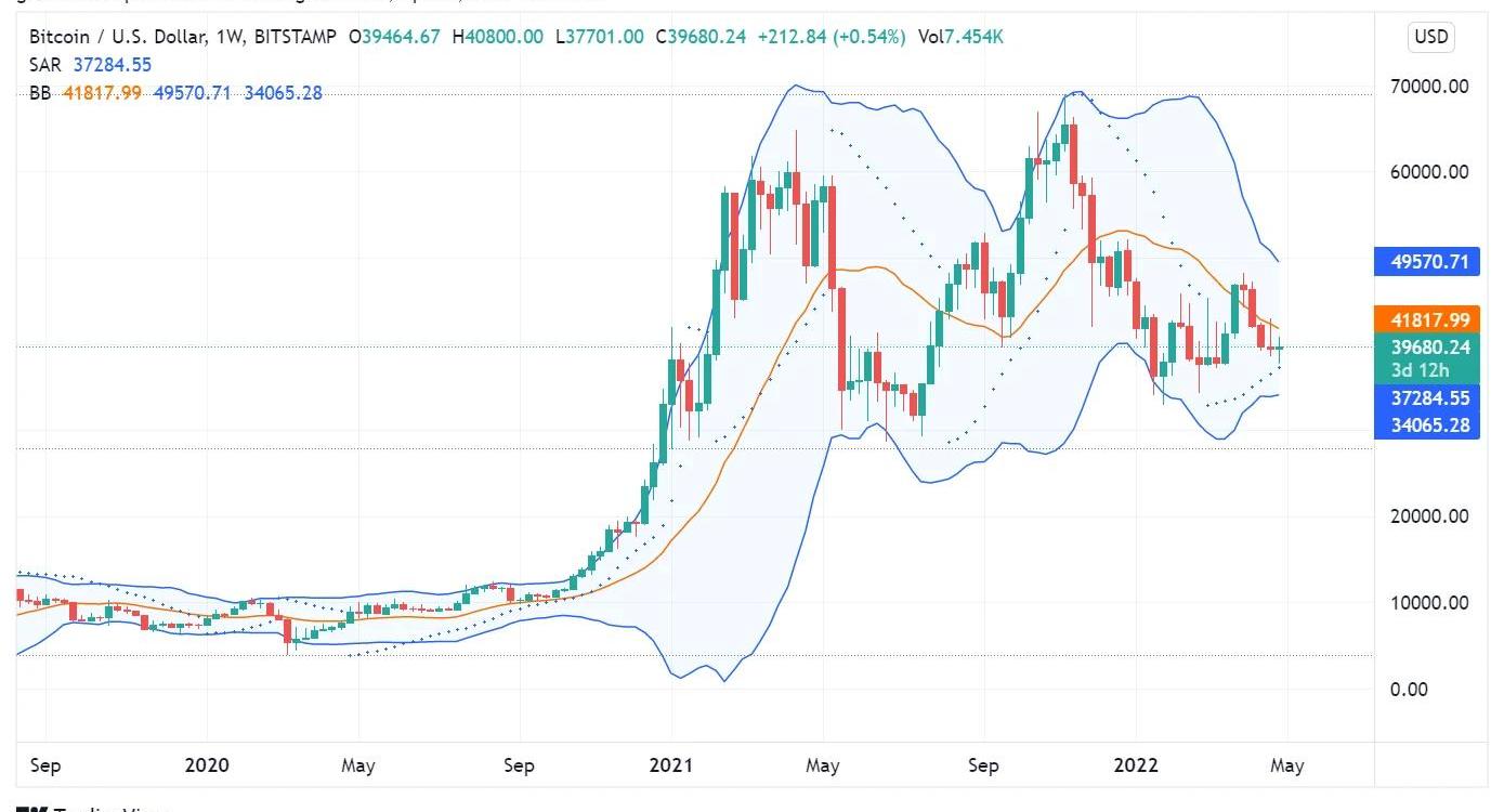 貨幣流動性整體偏緊。美聯儲5月加息50個基點已成定局,并大概率開始縮表。美元指數突破103.8,創2002年12月以來新高。由于美聯儲貨幣政策轉向鷹派,納斯達克指數4月累計下跌12%,這是自2008年全球金融危機以來的最差表現。美國剛公布的一季度GDP數據-1.4%遠低于市場預期,進入典型滯脹周期。當前BTC基本聯動美股,所以市場大概率繼續承壓。