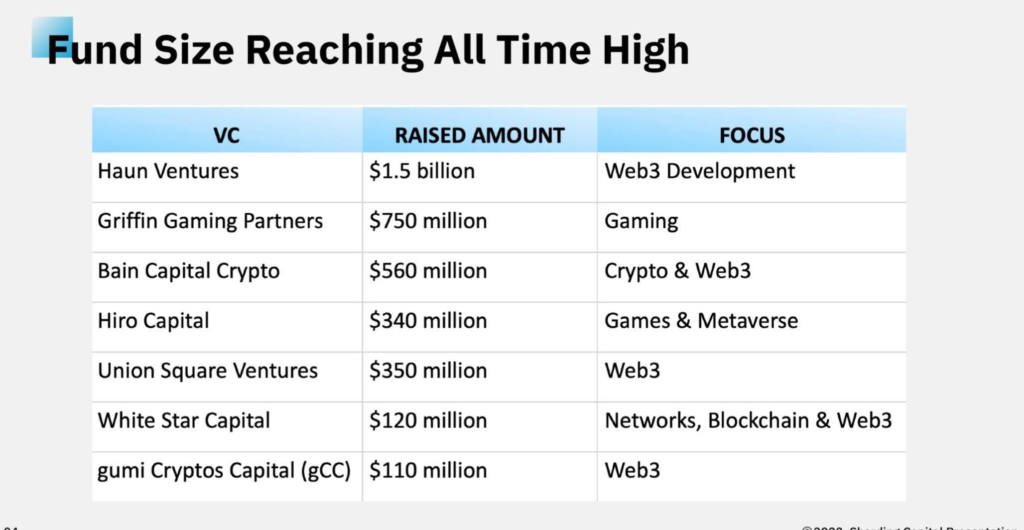 也正是因為Web3被普遍視作互聯網的下一階段,針對Web3領域的風險基金陸續推出,2022年第一季度基金推出速度尤為密集。以下是分片資本做的一個不全面總結: