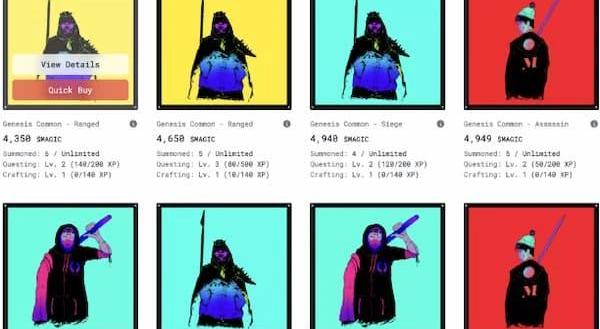 NFT市場Stratos:3月份,Optimism上NFT市場Quixotic團隊在Arbitrum上推出通用NFT市場Stratos,允許用戶進行出售和購買NFT,以及查看市場概覽數據。另外,還有一個Launchpad,目前可供申請。tofuNFT:是一個專注于GameFi和收藏品的多鏈NFT市場,支持27個區塊鏈網絡。TreasureDAO:Arbitrum上的NFT市場,以Treasure原生代幣MAGIC計價。TreasureDAO即將啟動Bridgeworld游戲和NFT交易市場Trove,所有收入將進入DAO。NFT/游戲Arbitrum上的NFT項目遠高于Optimism等其他Layer2,不過熱度比較高的只是少數不多的幾個項目。在Arbitrum最大的NFT市場TreasureDAO首頁共列出了16個系列,前6個系列中有3個是TreasureDAO元宇宙Bridgeworld內的NFT系列。LegionGenesis:TreasureDAO元宇宙Bridgeworld內的NFT系列,還會有其他比如質押等效用,目前地板價達到4350MAGIC,總成交量為720萬MAGIC。