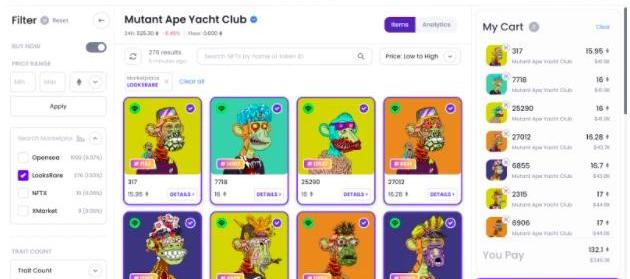 LooksRare與gem聚合平臺合作顯示: