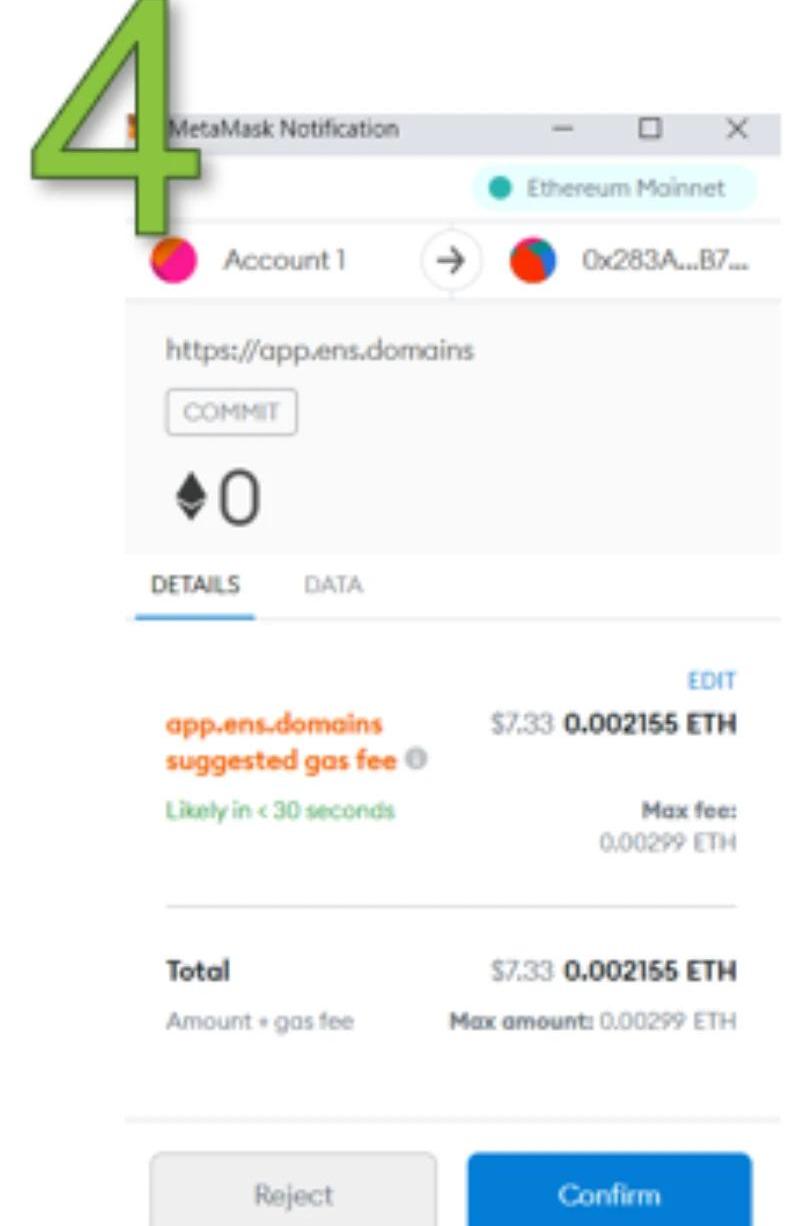 一旦你選擇了注冊期限,點擊"申請注冊"。你將需要確認兩筆交易中的第一筆,以完成注冊。確認第一筆交易。