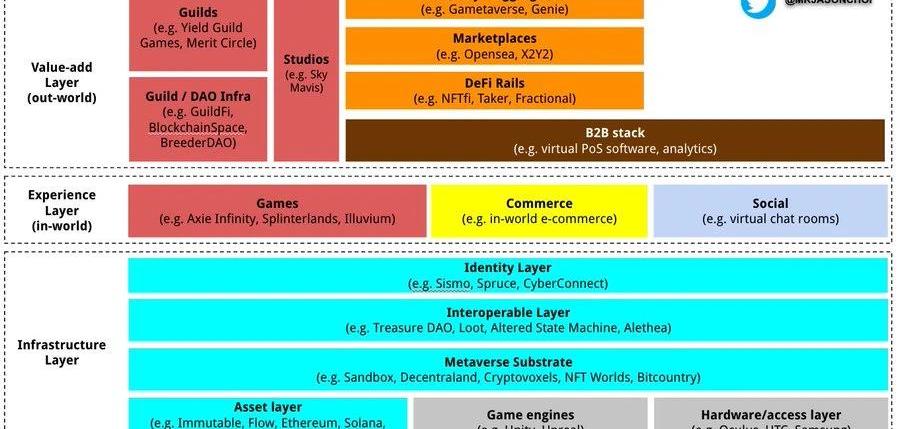 XRP/HKD-2.57%在過去的一年里,我們采訪了50多家Web3元宇宙公司。今天總結一下我的收獲。“Web3元宇宙”指的是數字虛擬世界,通常通過代幣或NFT包含一些用戶所有權元素。我們遇到的每個項目都屬于以下三類之一:基礎設施體驗層增值層