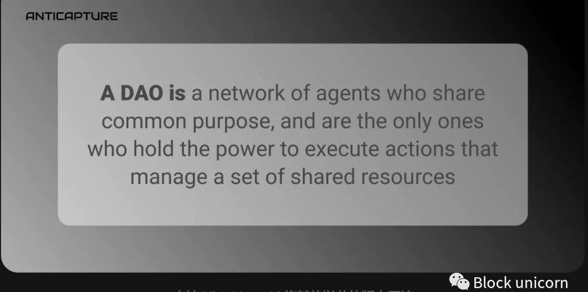 DAO是最強的抗捕獲治理形式Anticapture框架可用于調查與抗捕獲治理相關的許多問題,我們將在后續文章中探討其中的許多問題。今天,我們首先研究這個領域中最緊迫的問題之一:是什么讓DAO成為DAO?迄今為止,大多數回答這個問題的方法都默認引用特定技術或規定結構。然而,對于一個超越現有實現的定義,它必須保持冷靜并堅持首要原則。有了Anticapture框架,我們可以將DAO概念化為一種強大的抗捕獲治理形式。從某種意義上說,這意味著DAO繼承了父類抗捕獲治理的基本屬性。與任何抗捕獲治理的實例一樣,DAO是代理網絡,它們管理共享資源,并且它們有一個目的。DAO的目的不需要明確,DAO可能有多個目的。事實上,DAO的目的甚至可能源于其網絡中代理的不同動機。說DAO有目的只是說它是有意圖的。最后,與其他形式的抗捕獲治理一樣,DAO在一定程度上保護其資源不被捕獲。DAO與其他形式的區別在于DAO抵抗捕獲的方式和強度,具體來說,DAO難以在最脆弱的點捕獲:執行階段——網絡對其共享資源采取行動的點。當DAO采取影響或利用其共享資源的行動時,這些行動的執行以分散和自主的方式發生。執行的去中心化方面要求網絡中的所有代理共享執行操作的權力,這也是DAO主要抵抗內部代理捕獲的方式。另一方面,執行的自治方面要求網絡之外的任何代理都無權執行或更改DAO的操作,這也是DAO主要抵抗外部代理捕獲的方式。綜上所述,我們可以總結為DAO的單句定義:DAO是一個具有共同目的的代理網絡,并且是唯一有權執行管理、操作一組共享資源的代理網絡。