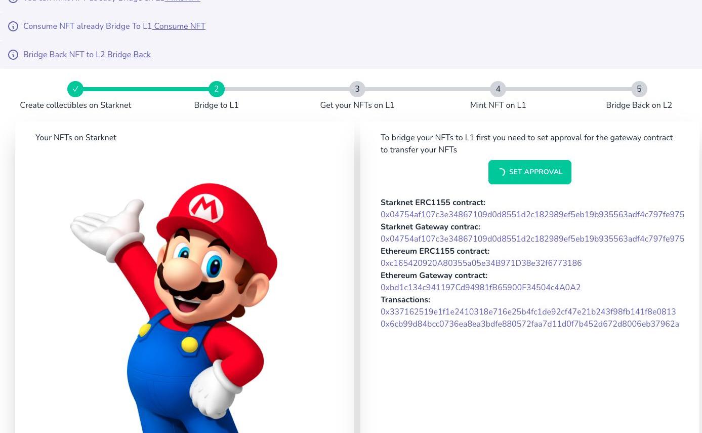 QasrQasr是StarkNet上一個Layer1和Layer2間的NFT橋。Qasr在Layer1和Layer2上各創建了一個網關,以及在L2上創建了橋接NFT的鏡像NFT合約。當前,Qasr僅允許用戶將源自L1的NFT從Layer2橋接至Layer1。