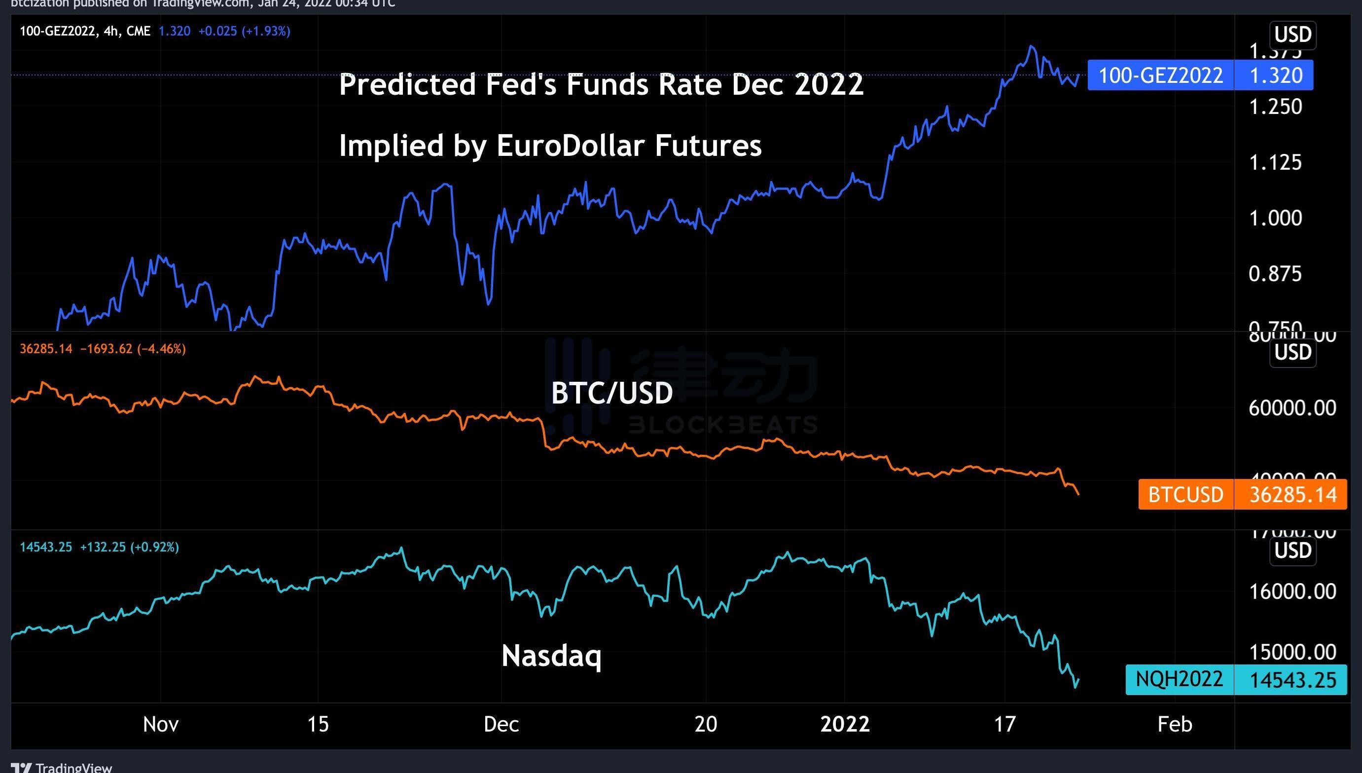 歐洲美元期貨可以看作是一個反映聯邦基金利率預期的市場,目前它已經對2022年的4次加息做出了反應。當寬松型貨幣政策出現收緊的預期時,市場必然會做出反應。