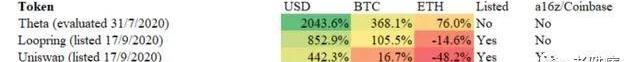 A16z的回報率總體上比Coinbase的列表差得多。在我看來,這有老鼠倉的味道。考慮到A16z的訪問權限,這些應該是最好的代幣,但相反,100%的12個月以上的代幣和90%的6個月以上的代幣都落后于以太坊。