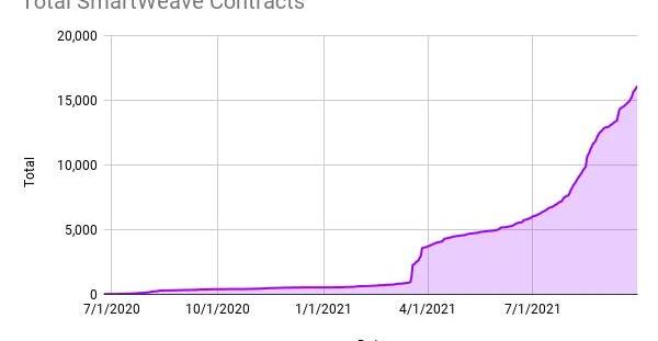數據:https://web3index.org/智能合約智能合約方面,Arweave的SmartWeave的智能合約數量也上漲迅速: