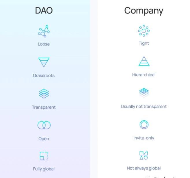盡管存在多種DAO,但它們都具有相同的元素,這些元素將它們與傳統組織區分開來,并使它們能夠公開、負責,并平等地分配在它們內部創造的價值。DAO的工作是未來