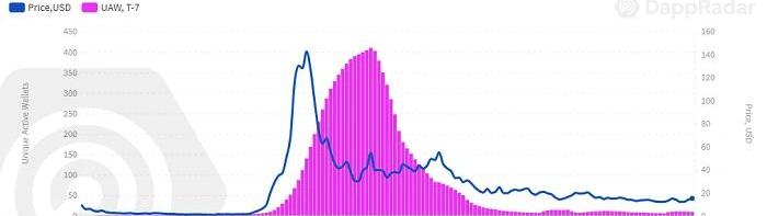 Decentraland是另一個在區塊鏈虛擬世界中成名的dapp,其市場表現與TheSandbox非常相似。自10月1日以來,Decentraland的原生代幣MANA價格已經上漲了兩倍,在萬圣節時觸及4美元,另外Decentraland土地底價也受益于市場效應,環比了增長204%。