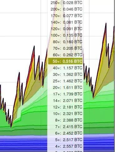 檢查自己支付的手續費是個好習慣。一些錢包軟件的自動設置會大大高估手續費。即使在繁忙時期,你需要支付的手續費也就是幾美元,不會高出太多。如果錢包所建議的手續費在你看來太高,你可以找找高級選項,自己輸入一個數值。網絡上有很多工具可以幫你看到正在發交易的用戶都支付了多高的手續費,比如這個網站的第二張圖。你可以在下圖看到,大部分的交易所支付的的手續費水平都低于50聰/字節,所以TrezorSuite所建議的51聰/字節應該可以在10分鐘之內上鏈。